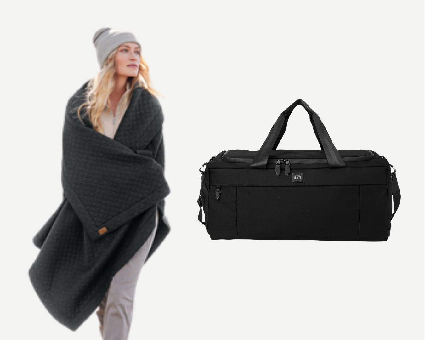 Travis Mathew Towne Duffel & Diamond Quilt Blanket