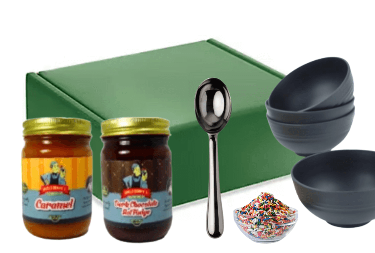 This ice cream gift box is loaded with all the essentials for the perfect sundae. Packed with dishes, spoons, the classic toppings, and even sprinkles? This gift will make anyone feel as if they just opened up their own Old Fashioned Ice Cream Parlor.